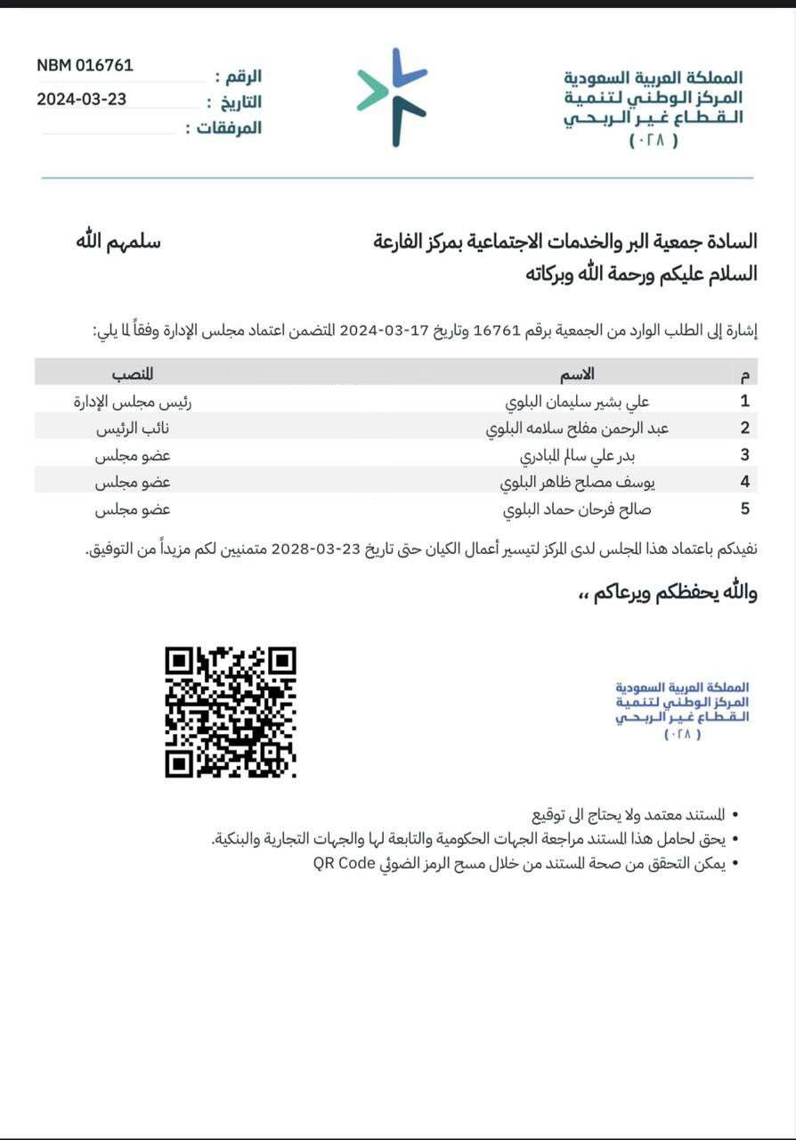 شهادة تسجيل الجمعية